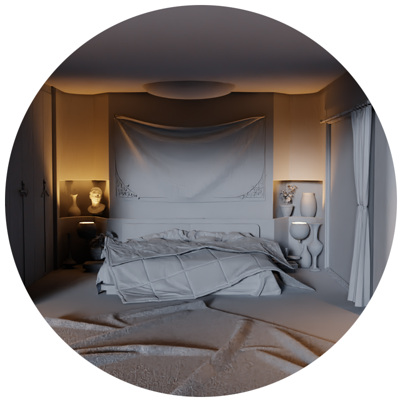 En esta práctica te proporcionaré los recursos necesarios, como una habitación, para crear telas decorativas en un interior. Puedes usar el material del curso o traer tus propios modelos o escenas.